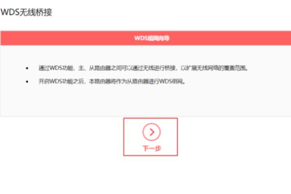 3、继续点击无线设置下的【wds无线桥接】,在当前界面继续点击【下一步】。