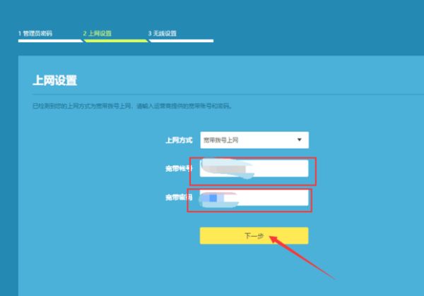 5.输入宽带账号和密码,点击下一步。
