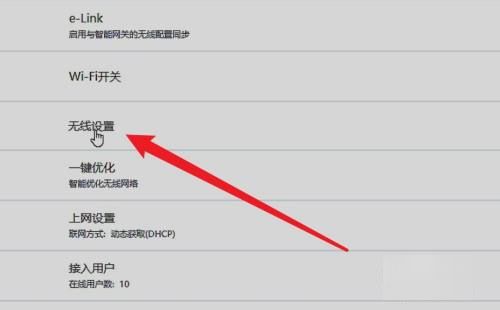 2、点击无线设置:在新界面里,找到“无线设置”一栏,点击它进入其中。
