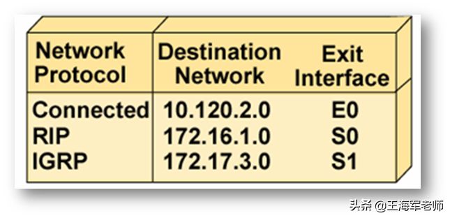 - 输出接口:说明IP 包将从该路由器哪个接口转发。如下图的 E0