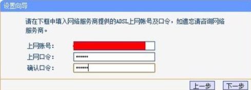 2.登录后台后选择快速设置,输入从网络服务商申请到的账号和密码,输入完成后直接下一步;