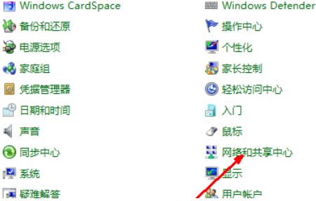 1、打开控制面板,找到网络和共享中心这个选项,然后打开。