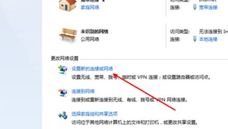 2、打开网络和共享中心之后,这里有详细的关于网络连接方面的信息。点击中部的设置新的连接这样一个蓝色的链接。