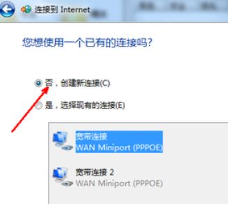 3、如果你的电脑上以前有网络连接,如果是重新设定一个无线网络连接,就选第一个选项,否则,创建一个新的连接,然后点击下一步。