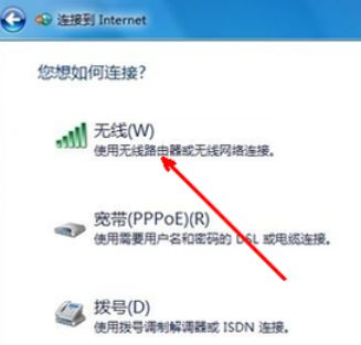 4、在选择连接方式这个页面中,如果有无线网络,就会在下面的列表中显示出一个无线连接的选项,用鼠标点击一下这个选项,然后点击确定。