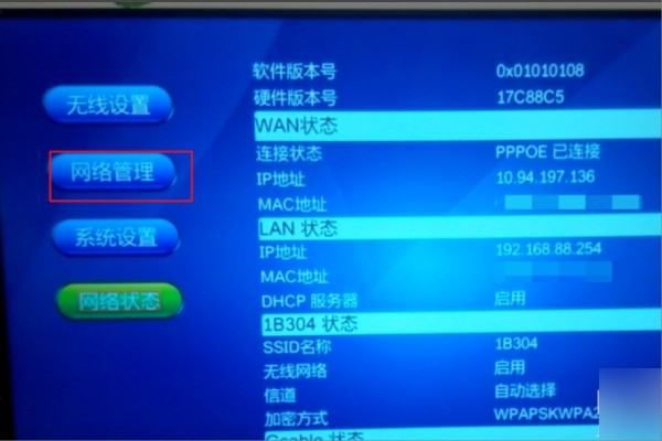6、接着,完成上述步骤后,返回“网络管理”,然后选择“无线设置”选项,如下图所示。