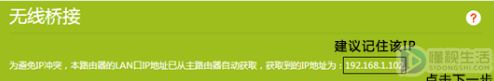 5、主路由器会给副路由器分配IP地址,后续需要使用该IP地址管理副路由器,建议记下该IP地址,点击下一步;