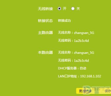 再次进入 应用管理 >> 无线桥接 中,可以看到桥接状态为 桥接成功。如下: