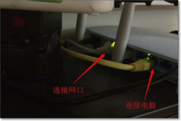1、首先要把路由器的硬件连接好,如图所示,将网口和电脑通过路由器连接。这里要注意,网线一端连接网孔,一端连接到路由器的总线接口上;另一根网线一端连在电脑网口上,一端连接在路由器的任意支口上。