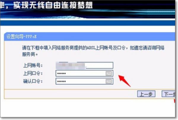 5、在搜索出来的网络中,需要输入自己开通互联网时自己家的宽带帐号和密码,如图所示。