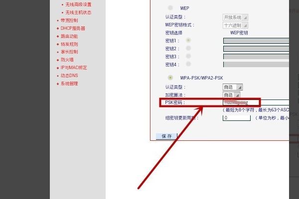 5、进入设置界面后,在界面内找到“无线设置”下的“无线安全设置”选项并单击,再修改红色框标记里的密码和账户,最后使用鼠标左键单击保存选项即可成功在手机上手动输入路由器的帐号密码。