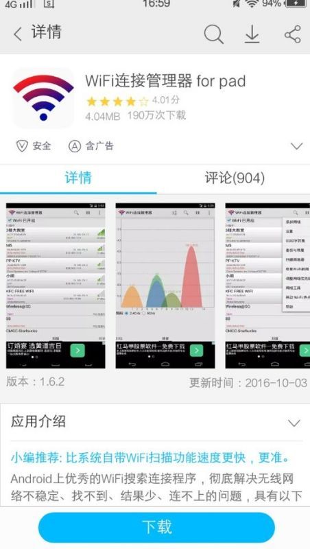 首先我们去网上或者应用商城下载一个“Wifi连接管理器”,如图所示: