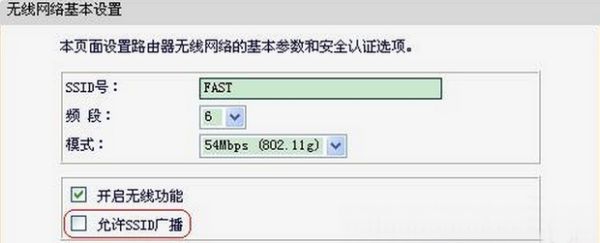 3. 第三种方法:关闭SSID广播功能:在迅捷无线路由器的设置界面点击“无线设置”——>“无线基本设置”——>取消勾选“允许SSID广播”,然后点击保存即可。
