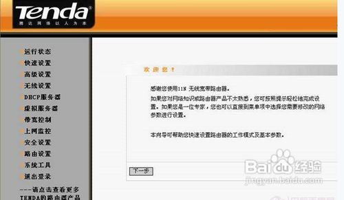 进入设置界面,点选快速设置,然后选者ADSL虚拟拨号(PPPoE)会出现如下的界面,点击下一步