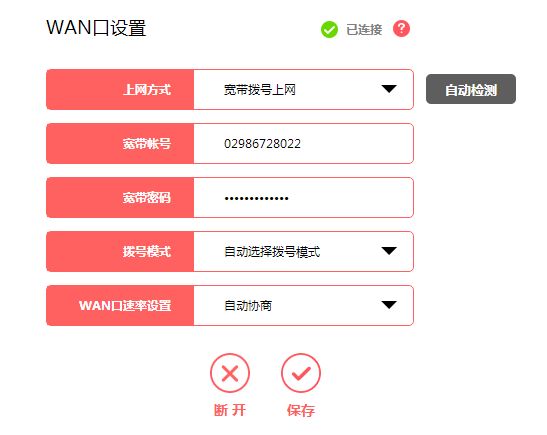 3、进入路由器后选择网络设置,进入WLAN口设置,选择拨号上网模式,输入网络账号和密码,然后确定,就可以了。
