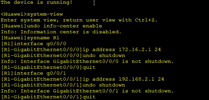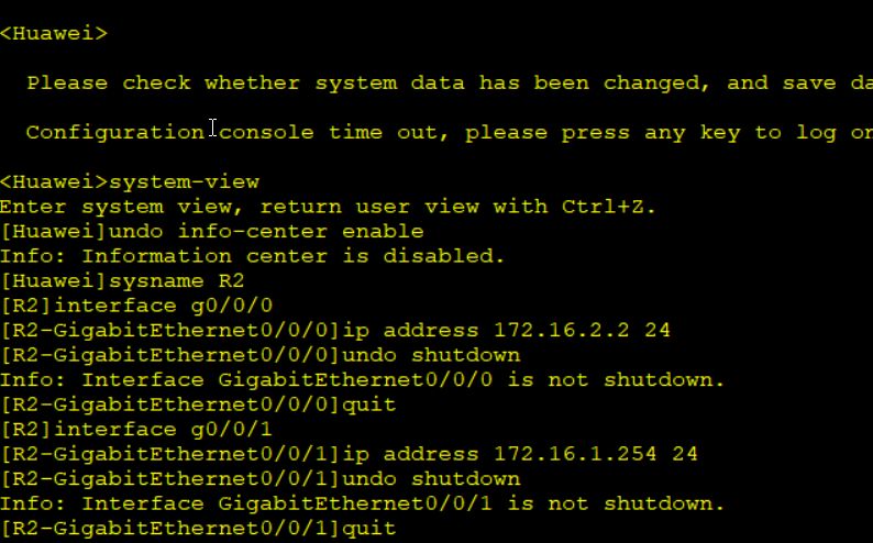 [R2-GigabitEthernet0/0/1]ip address 172.16.1.254 24 //设置ip