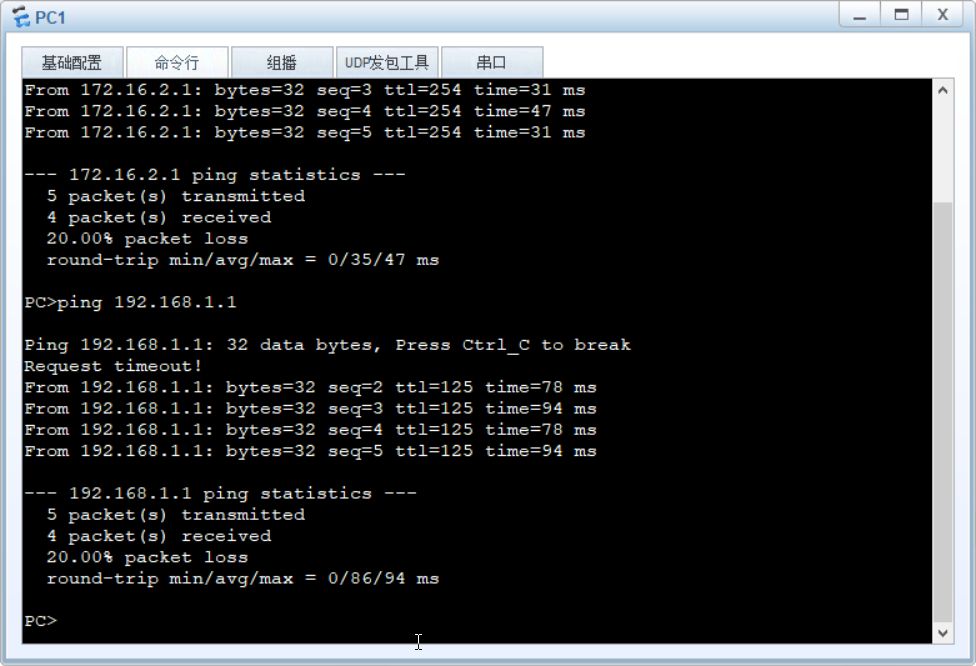 2.在PC1--R2--R1线路中配置路由信息协议RIP