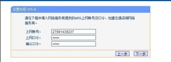 五、设置家里宽带账号和密码。确认点击“下一步”。