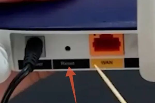 1、先拿一根牙签,找到你的路由器后方的reset的孔洞。
