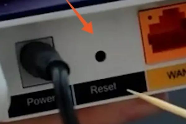 2、用这根牙签戳进这个小孔洞里面,长按五秒钟的时间,将路由器恢复出厂设置。