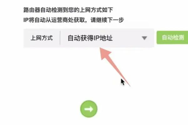 5、在第二个上网设置的界面选择你的上网方式,再点击箭头符号。