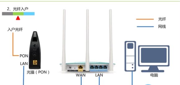 如果你家里的宽带,是通过光纤接入上网;那么运营商会提供一个光猫给你。自己在安装无线路由器的时候,按照下面的方式进行接线。