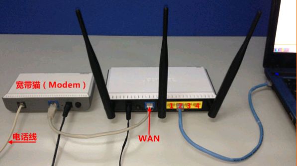 如果你家里的宽带,是通过电话线接入上网的,那么运营商会提供一个宽带猫给你,自己在安装无线路由器的时候,请按照下面的方式进行连接。