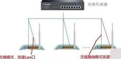 2、交换机的任意端口连接主无线路由器的LAN端口;下级无线路由器,即一层,二层,三层的路由器使用LAN端口连接到交换机,这点非常重要,不要使用WAN端口。