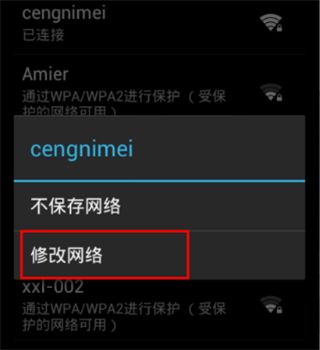 4、选择选项“修改网络”进入修改网络页面。