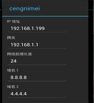 8、“网关”、“网络前缀长度”、“域名1”、“域名2”按照默认的输入一遍后输入密码保存--然后退出重启,再开已连接上。
