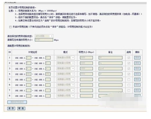 4)如果没有设置任何状态为“启用”的IP带宽控制规则,填写的带宽大小将不起作用。