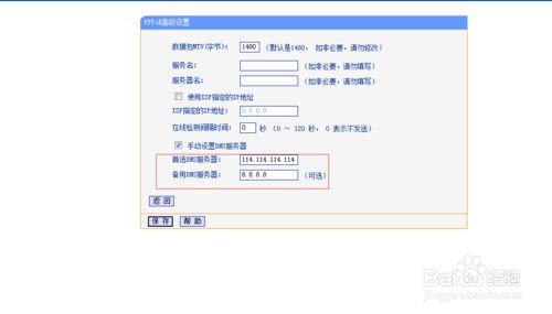 这里以114.114.114.114作为首先DNS服务器,备用DNS服务器8.8.8.8,然后保存