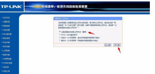 2、点击设置向导,选择PPPOE拨号方式(如果是单位局域网,选择动态IP。)