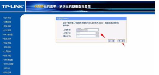 3、填写宽带用户和密码。(动态IP不会出现这个选项。)