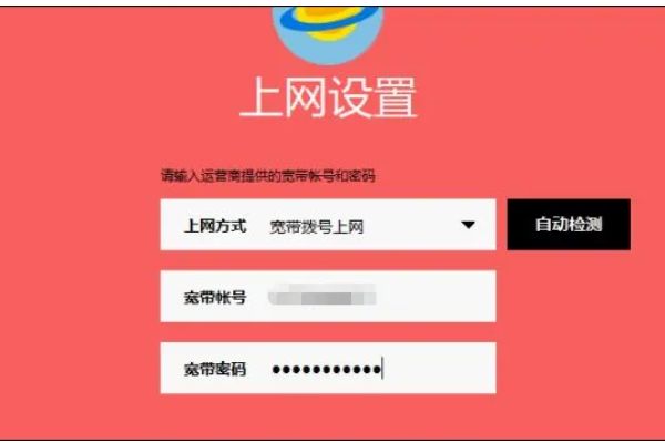 3、系统检测输入正确后,输入宽带上网的帐号跟密码(由运营商提供),保存进入下一步。