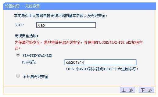 3、再进行无线设置,名称任意,密码可稍复杂。