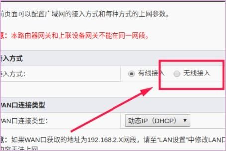 8、随后,完成上述步骤后,选择相同的WAN设置,访问方式为“无线接入”的方式,如下图所示,然后进入下一步。