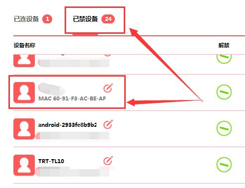 五、这样就可以把该设备添加入“已禁设备”列表内,该设备之后将永远不能够连接这台路由器。