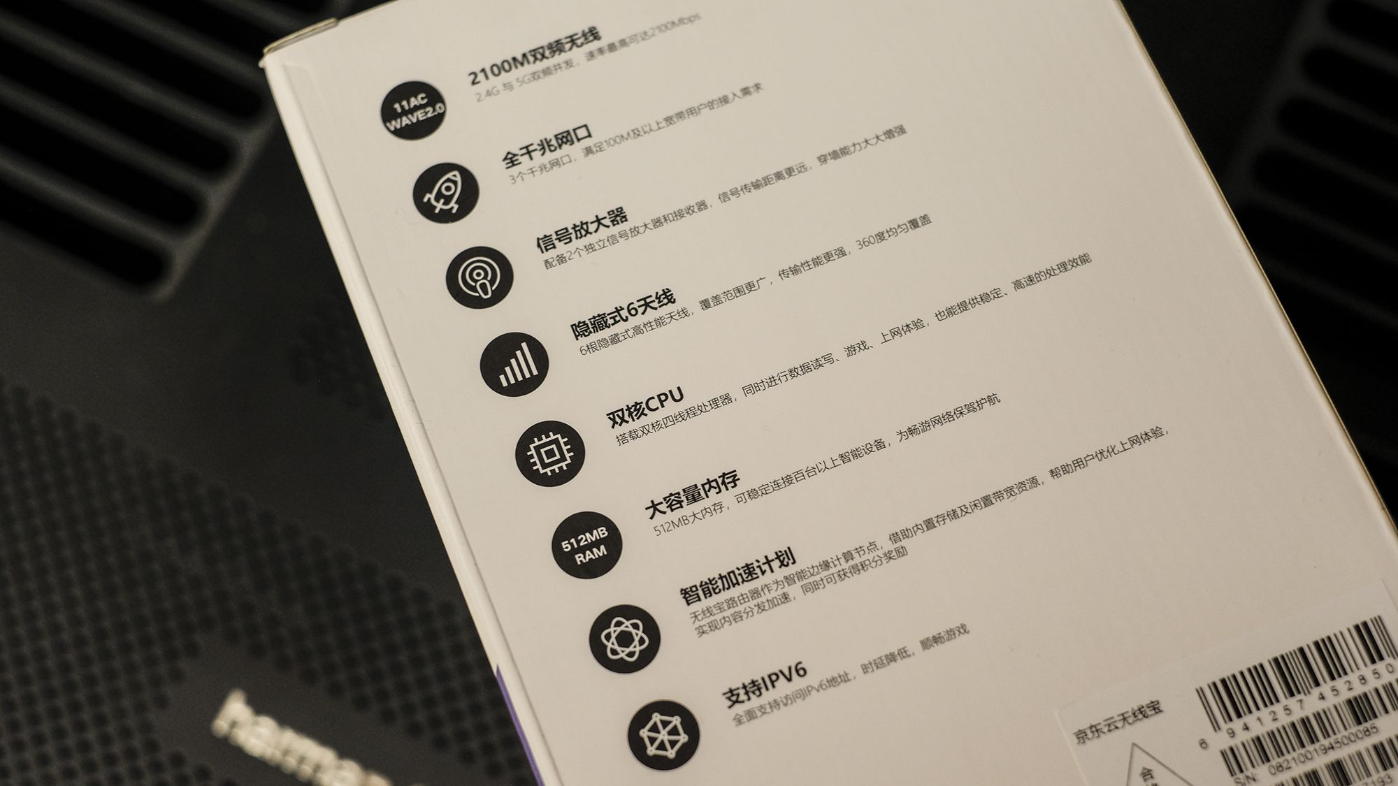 京东路由的名称为京东云无线宝,虽然我目前体验的功能就是一台智能路由器,但是他的功能、配置的定位不仅仅作为一台无线路由,否则也不会内置128GB的存储空间。