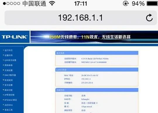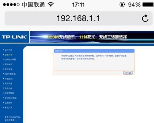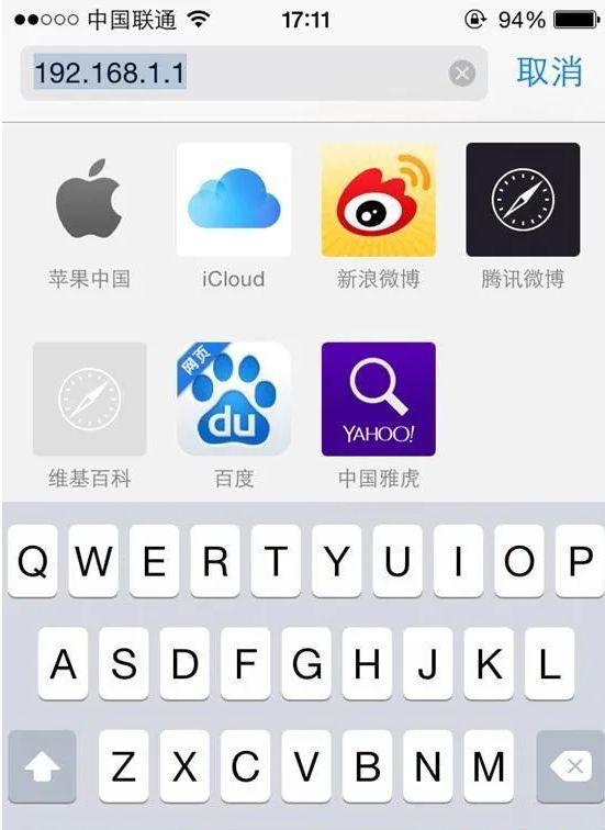 打开手机上的浏览器,在地址栏中输入:192.168.1.1打开设置界面;