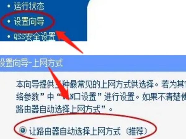 3、点击确认后,进去主页面,在菜单栏下边点击“设置向导”后,去选择第一项“让路由器自动选择上网方式”点后在输入上网帐号和密码。