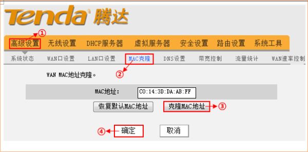 在路由器设置界面,点击高级设置-MAC克隆,手动克隆-克隆mac地址,看到地址不是C8:3A:35开头的就点击确定。(克隆时需要拿网线连接电脑与路由1/2/3接口任意一个,不要连接路由的无线信号)