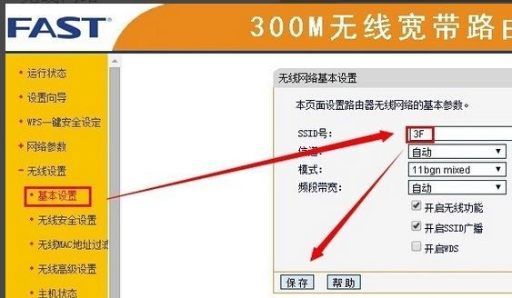 6、然后展开无线设置——基本设置,输入SSID号,即无线设备名称。