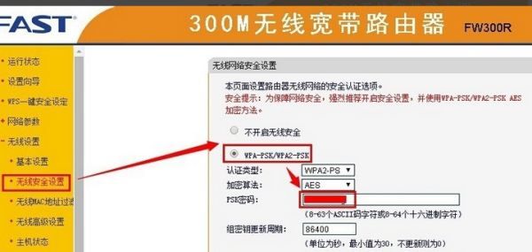 7、然后选择无线安全设置,选中一种WIFI加密类型,输入WIFI密码,点击保存。
