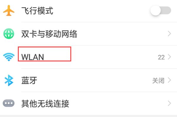 2、进入到设置界面以后点击WLAN。