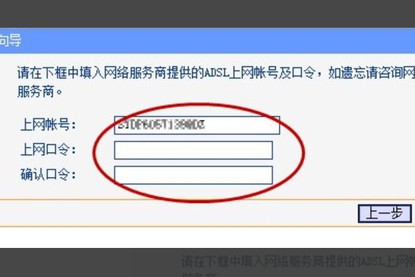 6、输入从网络服务商申请到的账号和密码,输入完成后直接下一步;