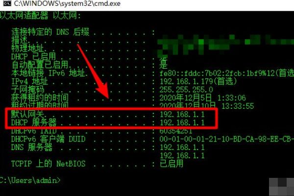 3、查看网关地址,网关或者DHCP服务器地址即为路由器的IP地址。