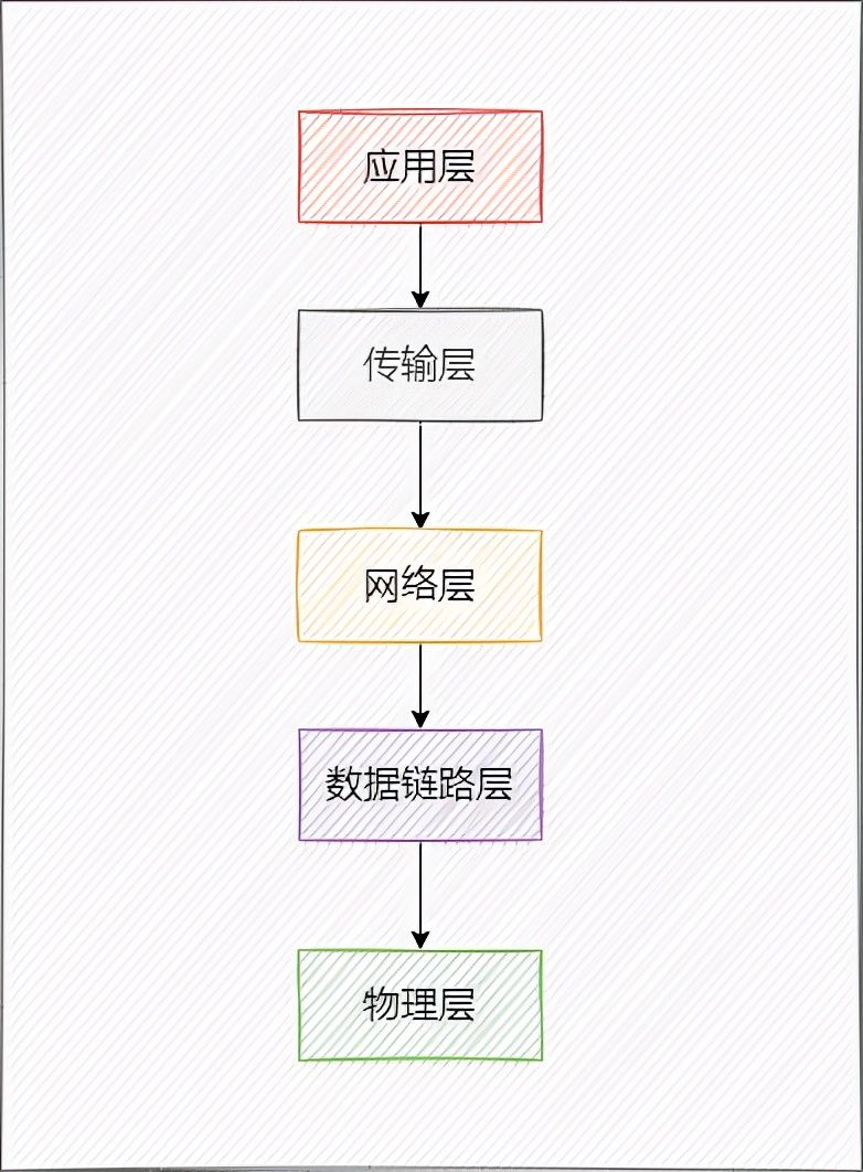 TCP/IP五层模型:应用层、传输层、网络层、数据链路层、物理层。