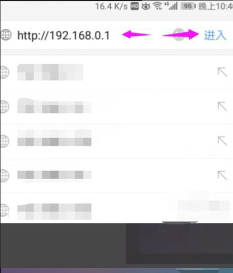 2、在浏览器的地址栏中输入【192.168.0.1】,点击“进入”按钮。