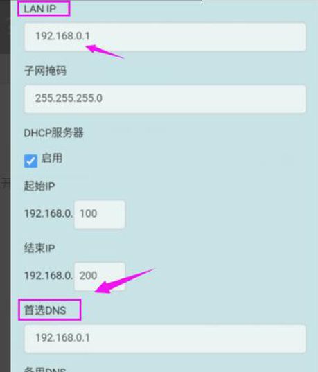 7、这里我们就要重新设置【LAN IP】及【首选DNS】选项,设置完毕后,点击“确定”按钮即可。